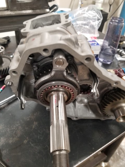 Next install the cage bearing and 4wd selector gear. This is followed by the hub sleeve. I used a dead blow to tap the hub sleeve on. The marlin kit comes with a new Hub sleeve which can only be put on one way. Make sure if you are using the factory hub sleeve you put it on in the correct orientation.