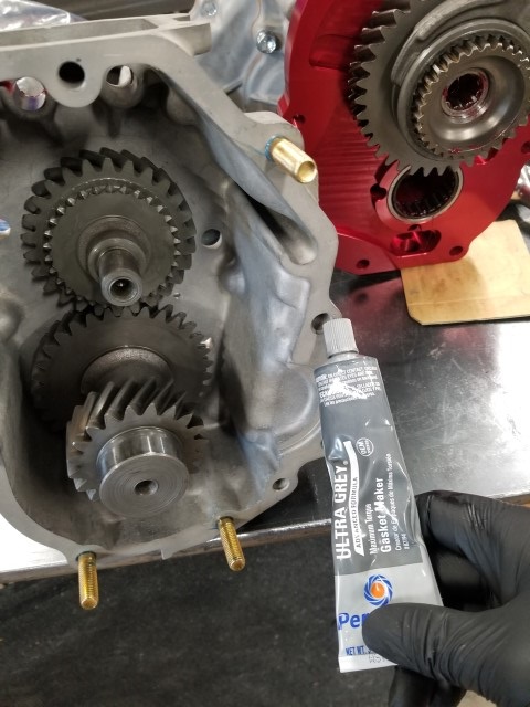 Put some RTV on the mating surfaces and slip the reduction housing on. Don't forget the two front bolts